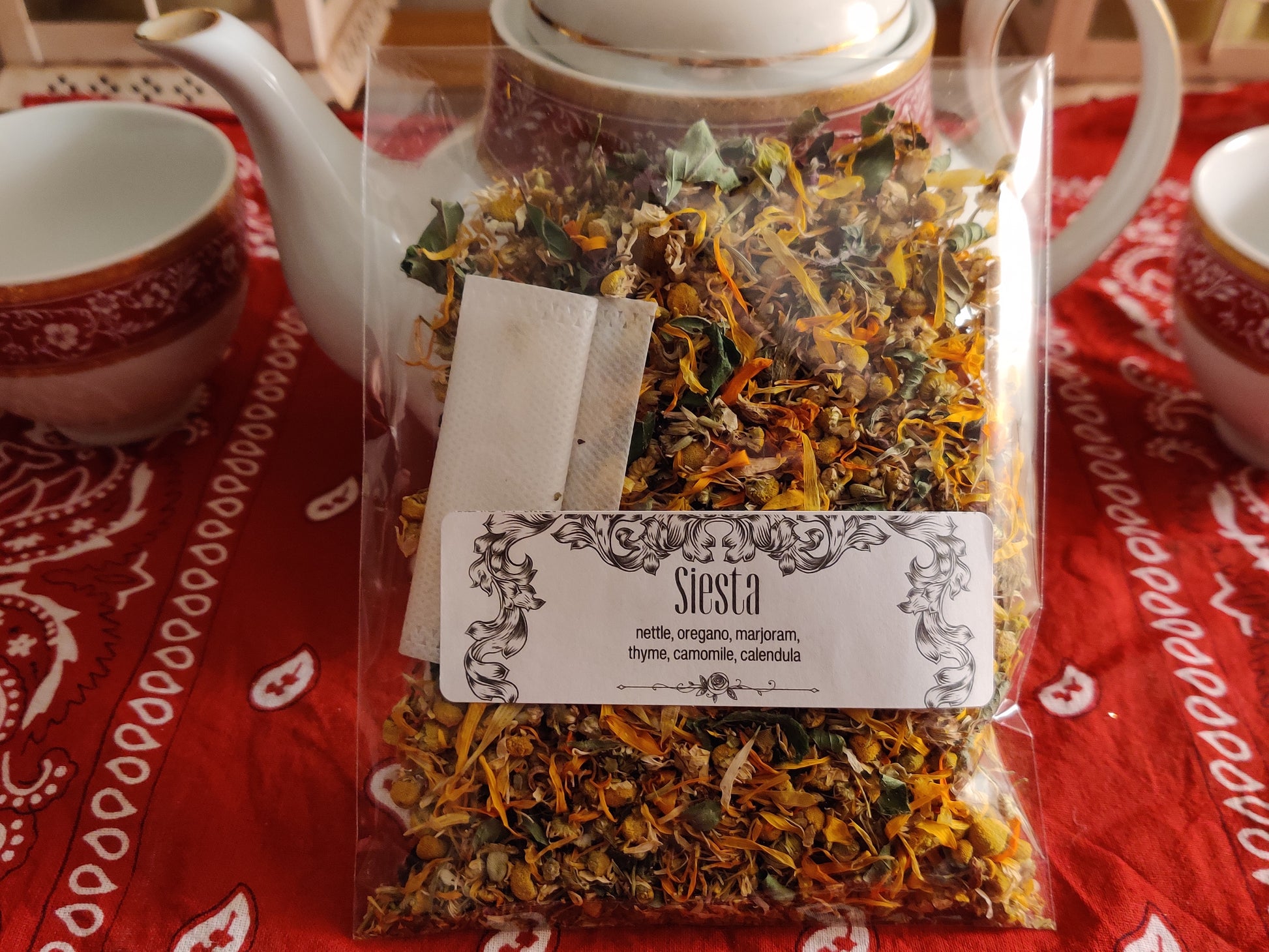 a savoury mix of Mediterranean culinary herbs with calendula and chamomile for extra immune support. This blend boosts your body’s defenses against seasonal colds while addressing digestive issues. Bitter tastes of chamomile and calendula with spicy. earthly notes of thyme and oregano plus nourishing saltiness of nettle.
